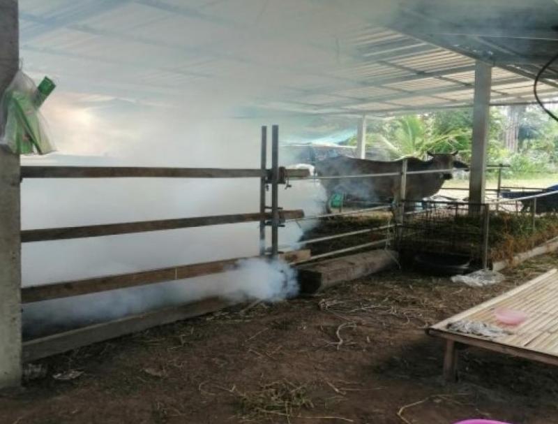 พ่นยาหมอกควันเพื่อกำจัดแมลงพาหะนำโรคลัมปีสกิน (Lumpy Skin Disease) ในโค-กระบือ (6 ภาพ) [15 กรกฎาคม 2564]